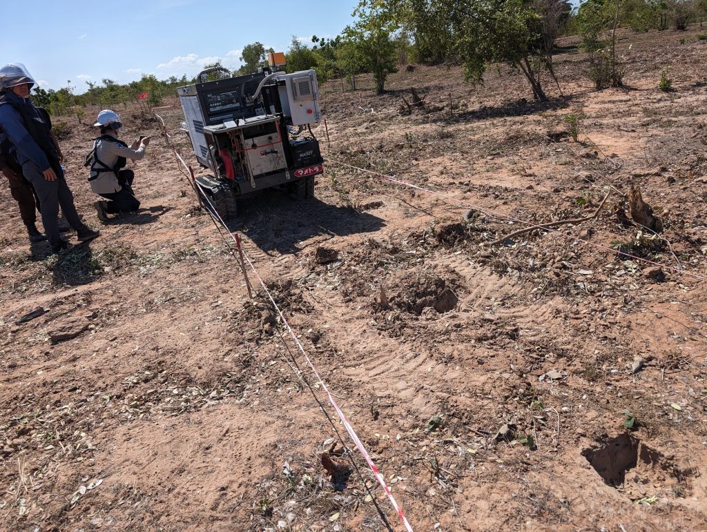 今年、カンボジアとタイの国境地帯で断続的な交戦があり、報道の中で「地雷」がクローズアップされました。両国の国境は、従来からデリケートな領土問題をはらんでおり、カンボジア-タイ国境には、今も地雷埋設可能性のある潜在的地雷原が未調査のまま広く残されています。また技術的にも、国境付近の地雷原では、埋設地雷の埋まっている「向き」が一定しておらず、手作業(探針棒とシャベルで行う地雷原掘削)により高いリスクが伴います。CMACはこのような危険な場所の地雷除去にリモートコントロールで地雷原を掘削できるDMRを活用していく考えを持っています。